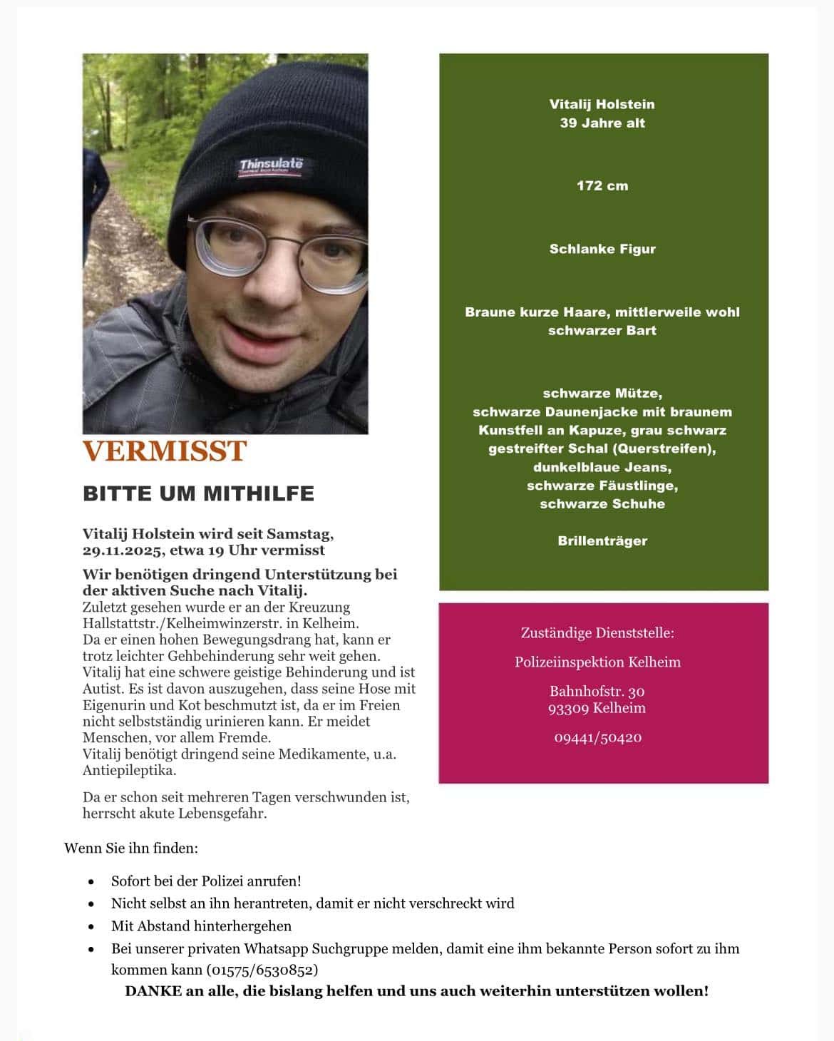 Sie sind hier: Home » Vermisste Person in Kelheim – Aufruf und Bitte um Ihre Mithilfe